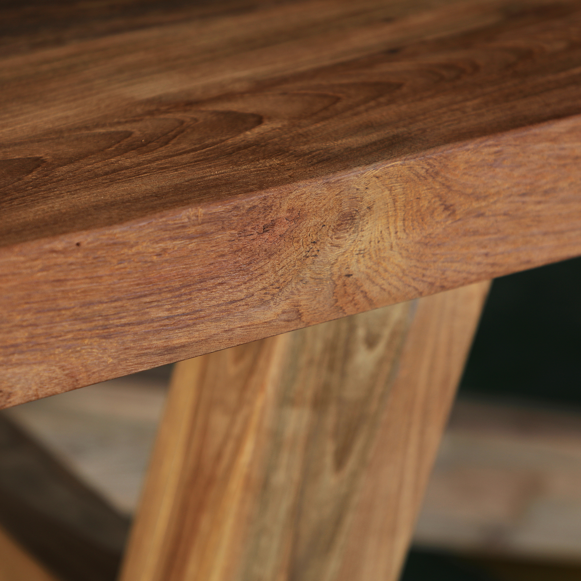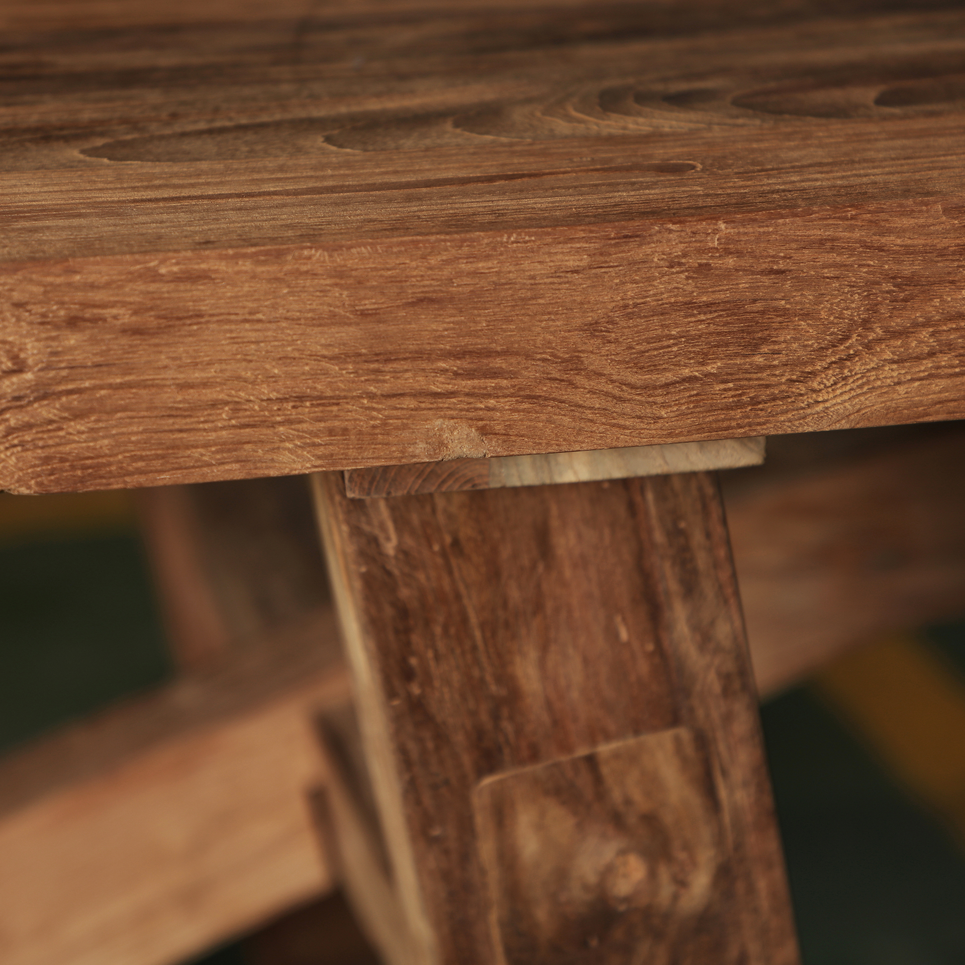 Mesa comedor nysted, en color marrón, de estilo colonial. Fabricado en madera de teka reciclada. Producto desmontable.