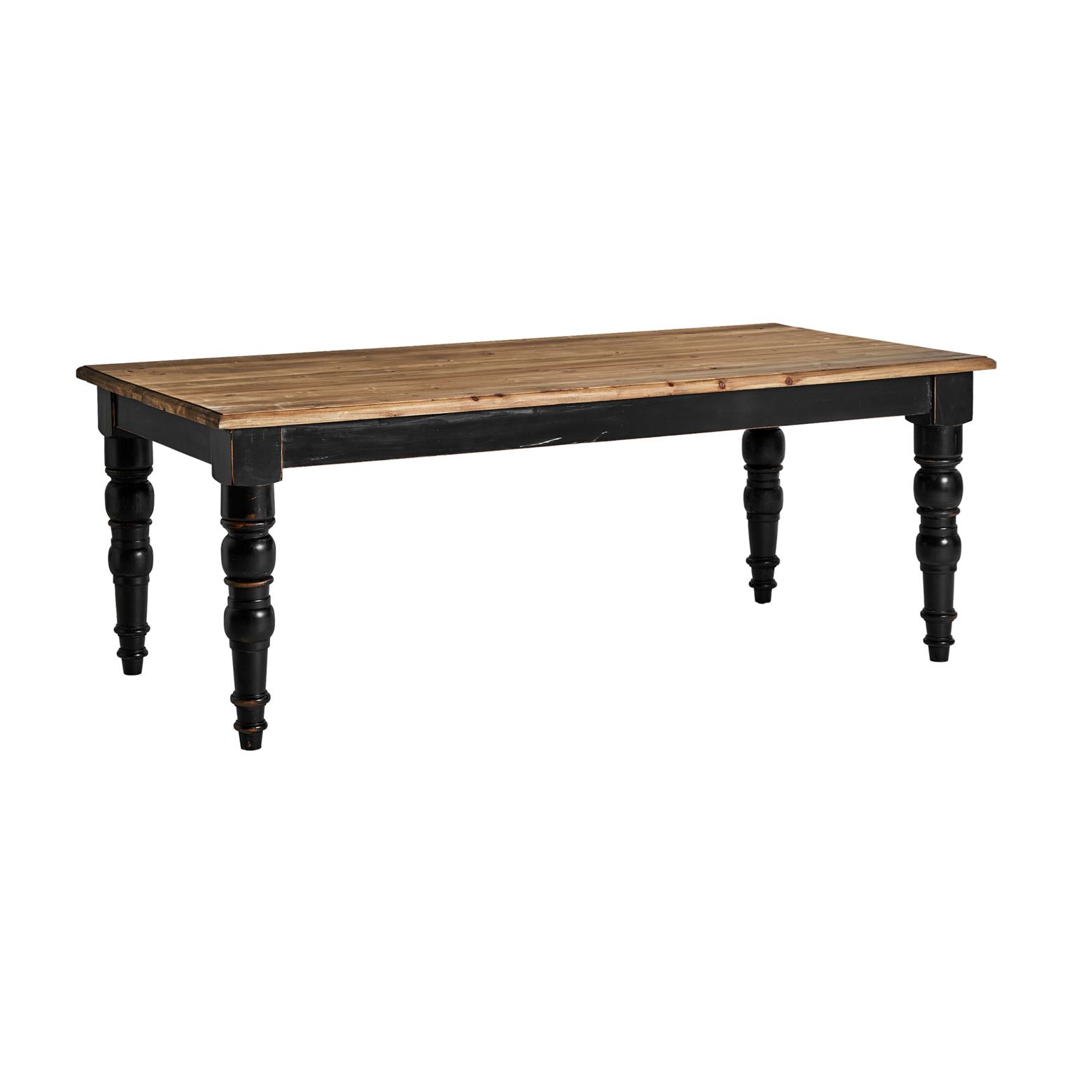 Mesa comedor zenica, en color negro/natural, de estilo provenzal. Fabricado en madera de olmo. Producto desmontable.