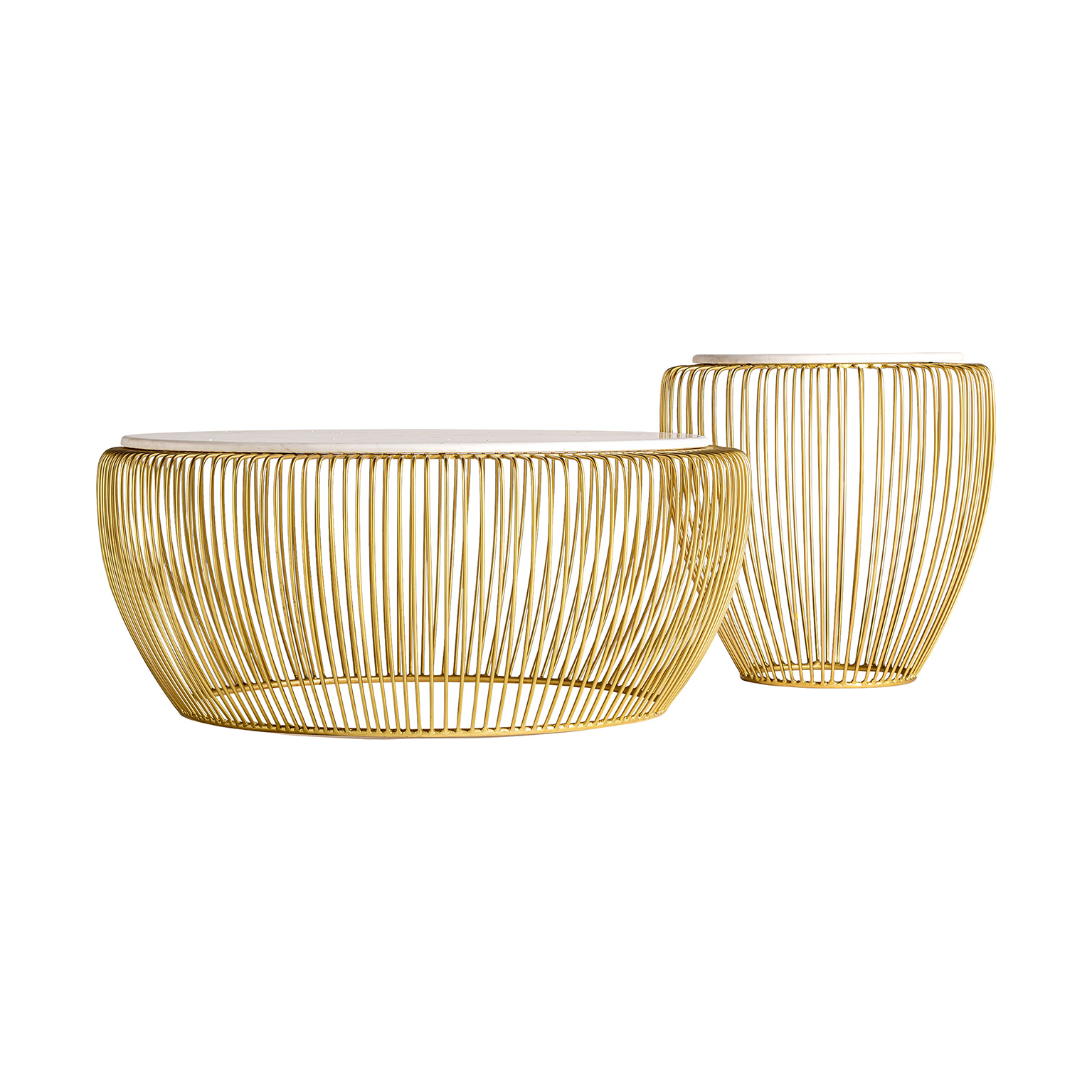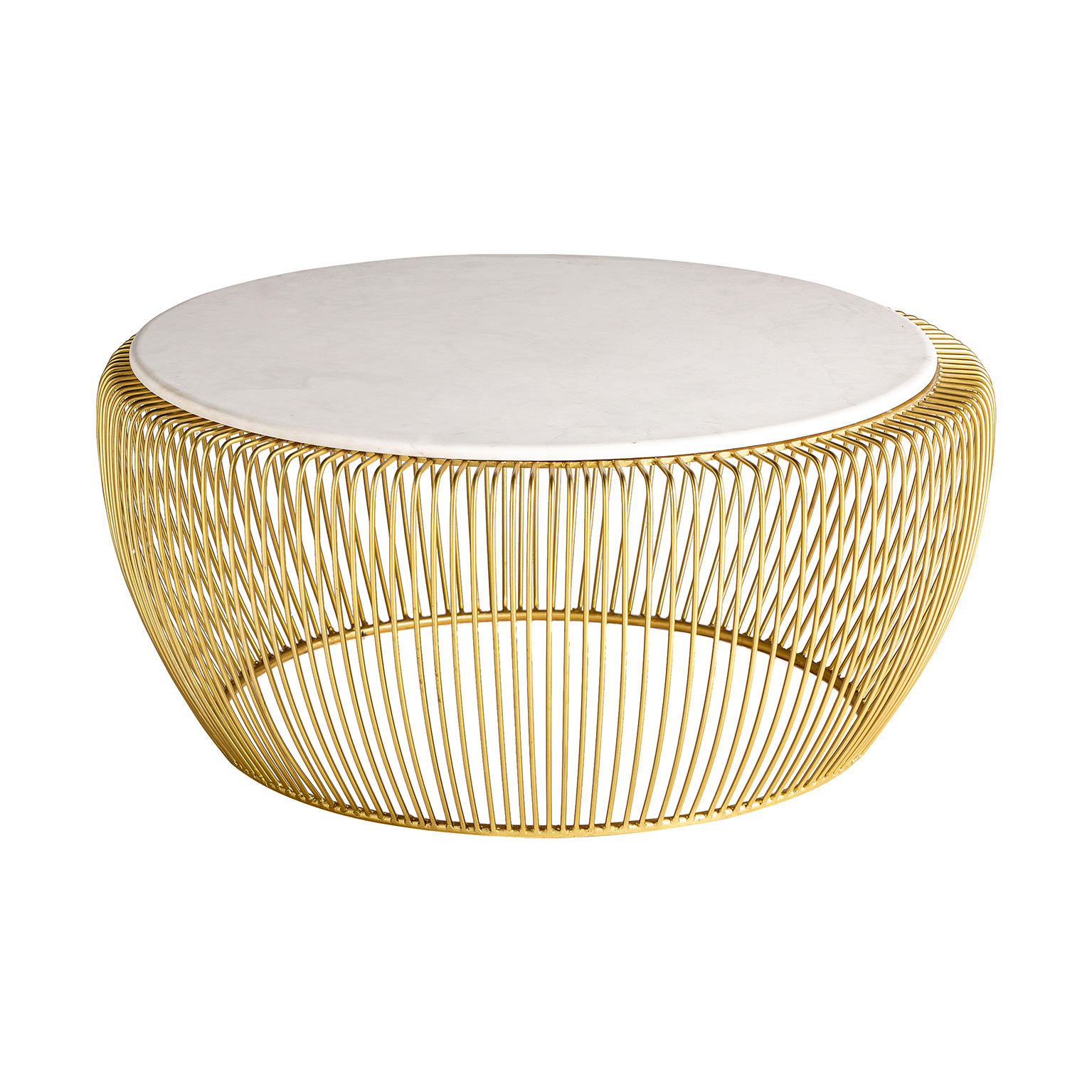 Mesa de centro digny, en color blanco/oro, de estilo art deco. Fabricado en hierro, combinado con mármol.