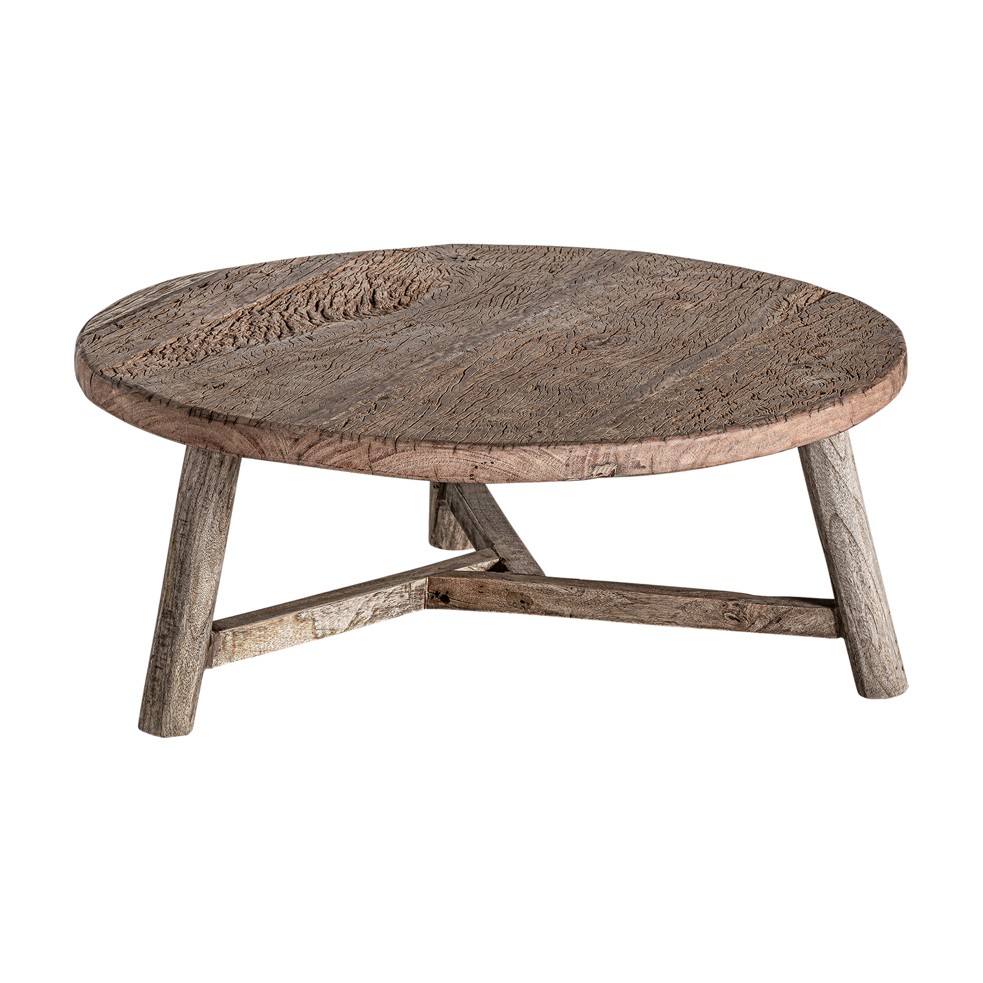 Mesa de centro samsun, en color natural envejecido, de estilo étnico. Fabricado en madera de pino reciclado, combinado con madera de teka reciclada y madera de mango reciclada. Acacia reciclada.