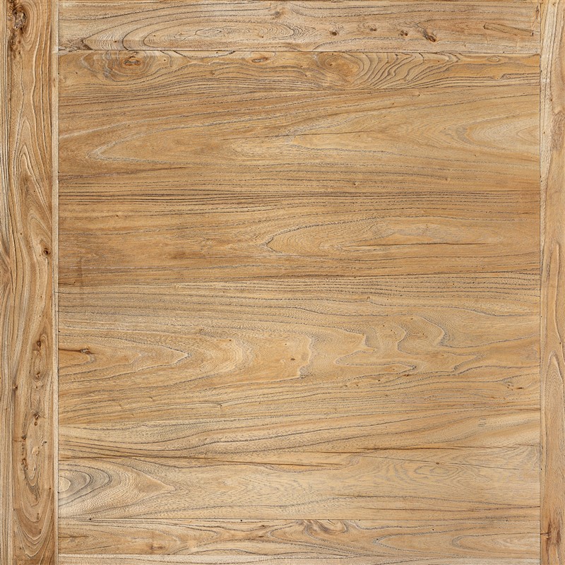 Mesa extensible Berca de estilo clásico, fabricado en madera de olmo reciclado en color marrón. Madera proveniente de antiguas puertas por lo que puede haber imperfecciones. . Producto desmontable, extensible.