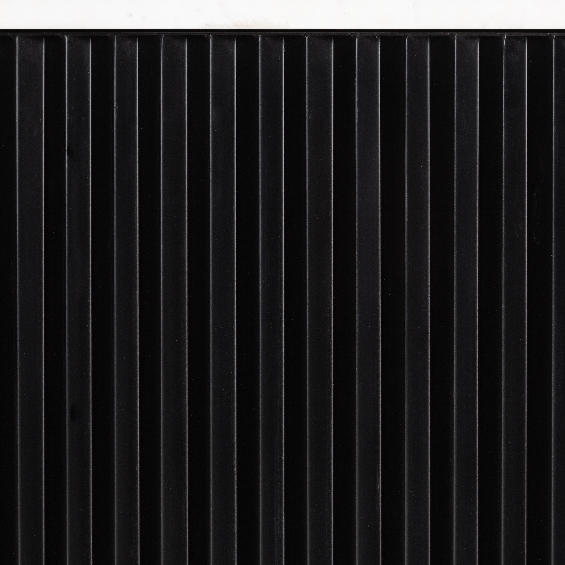 Mueble tv bettingen, de estilo art deco. Fabricado en mármol, en color negro, combinado con hierro, en color blanco y madera dm, en color oro.