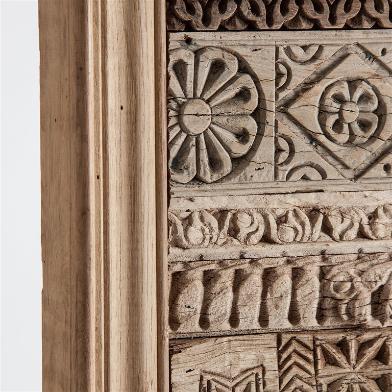 Panel decorativo askale, en color crema envejecido, de estilo oriental. Fabricado en madera de teka, combinado con madera de mango.