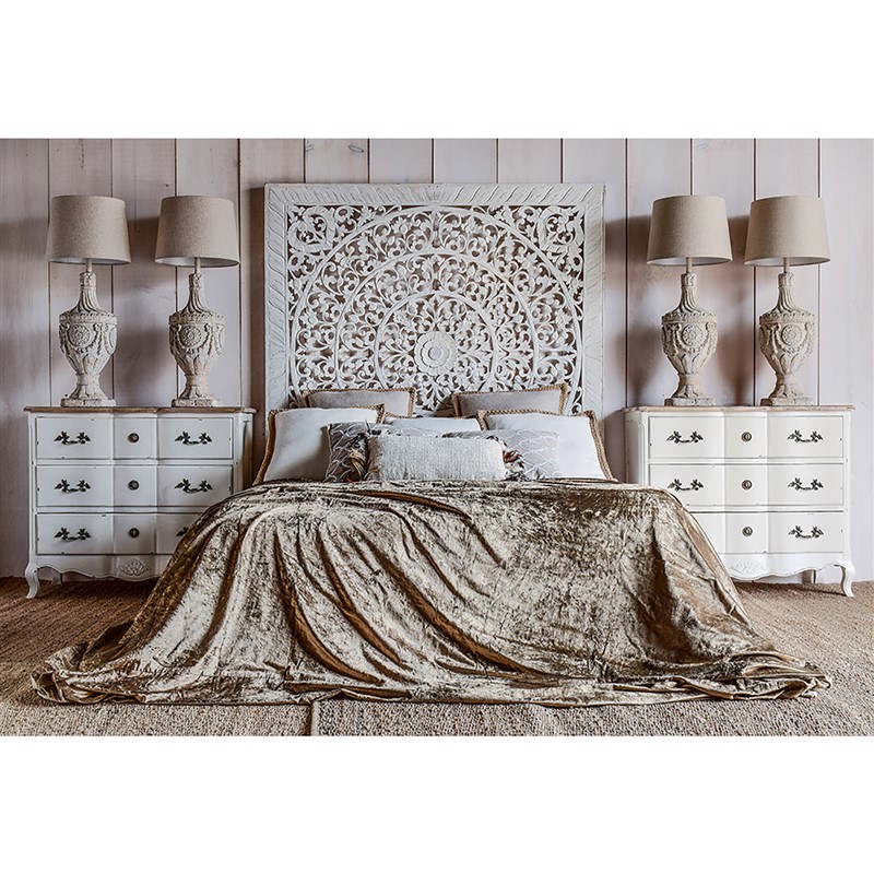 Panel decorativo cuadrado eleonora, en color blanco decapado, de estilo provenzal. Fabricado en madera dm.