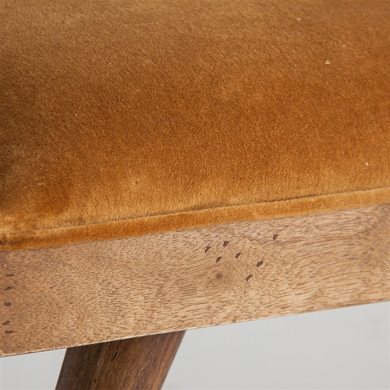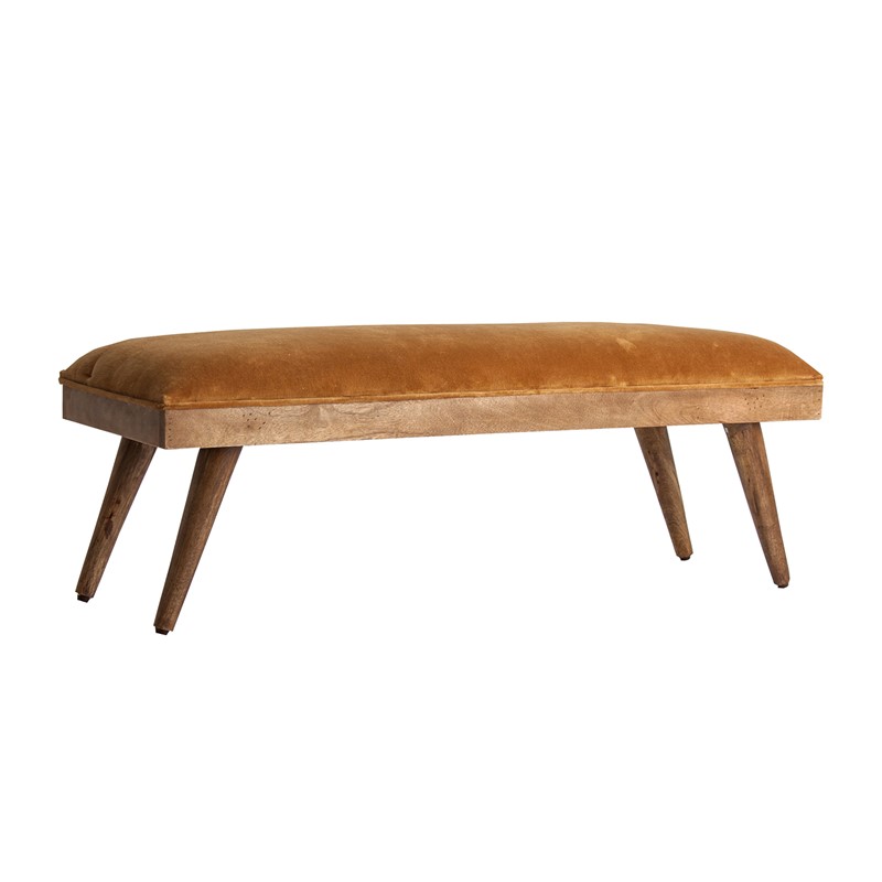 Pie de cama erdweis, de estilo shabby chic. Fabricado en madera de mango, en color mostaza, combinado con chenilla y espuma. Producto desmontable.