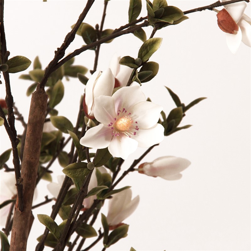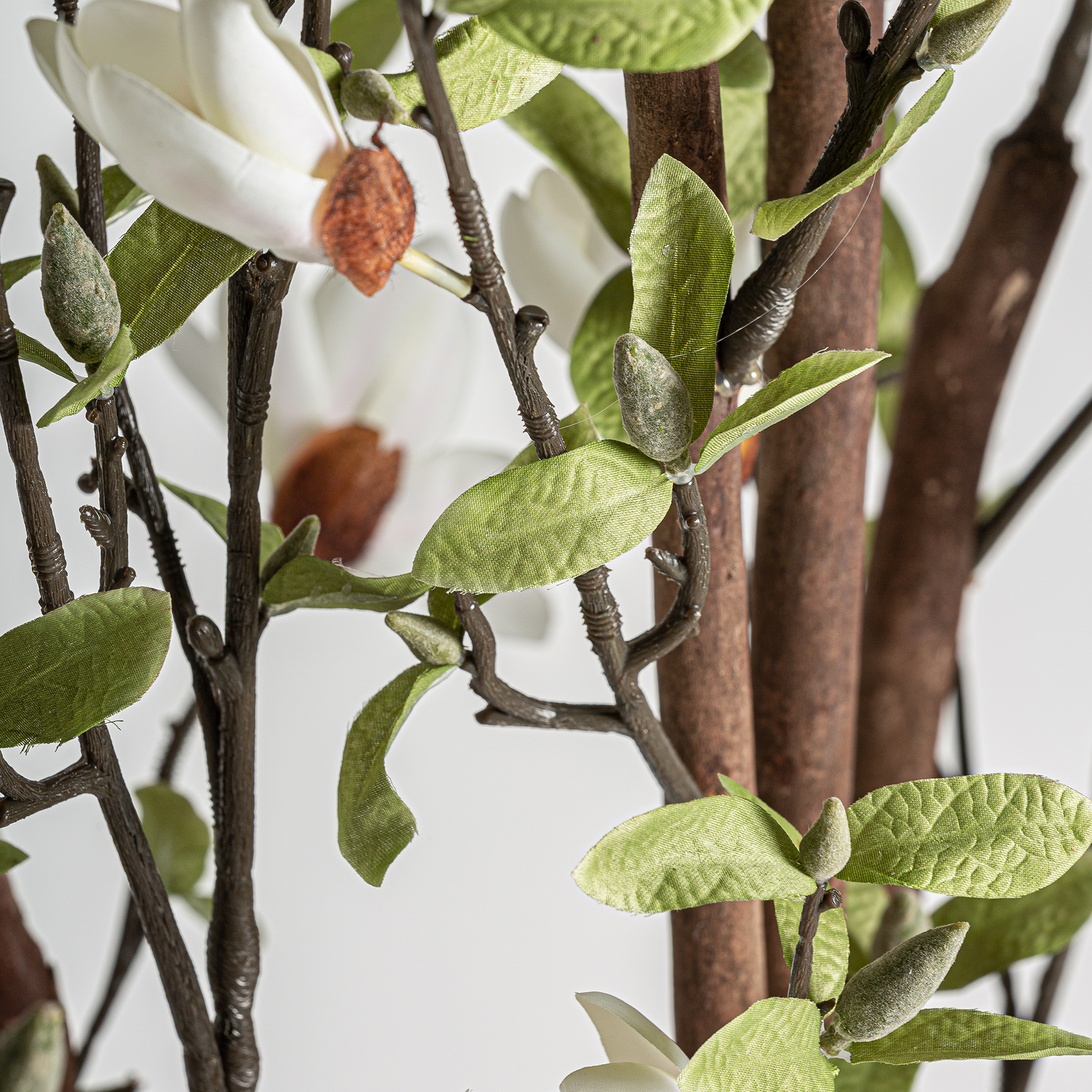 Planta alta magnolia, en color verde/crema, de estilo shabby chic. Fabricado en poliéster, combinado con plástico y madera. Producto plegable.
