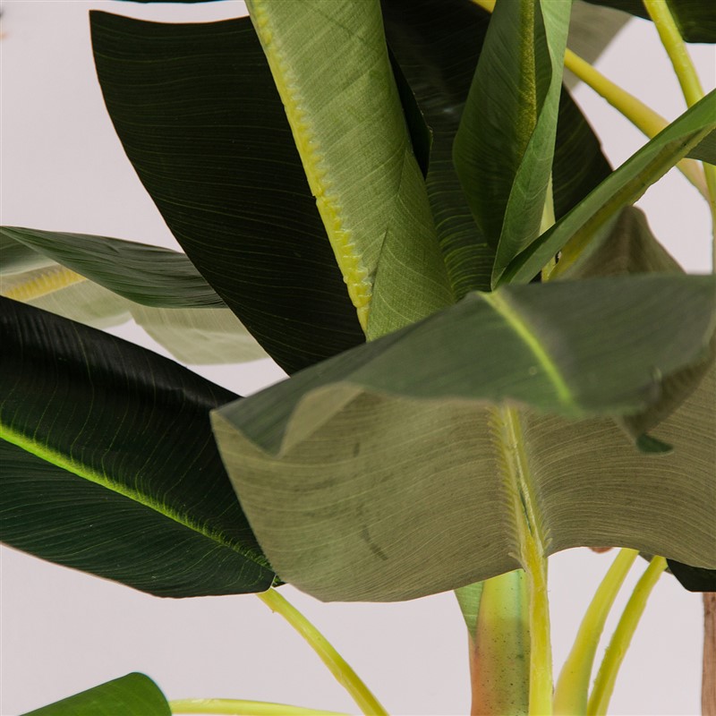Planta platanero, en color verde, de estilo colonial. Fabricado en poliéster, combinado con plástico.