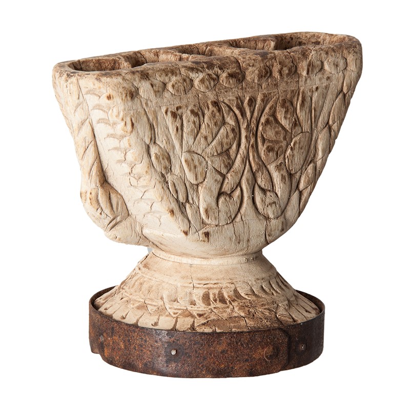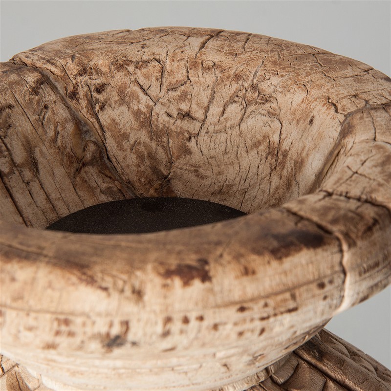 Portavela semicircular, en color blanco roto envejecido, de estilo étnico. Fabricado en madera de teka, combinado con hierro.