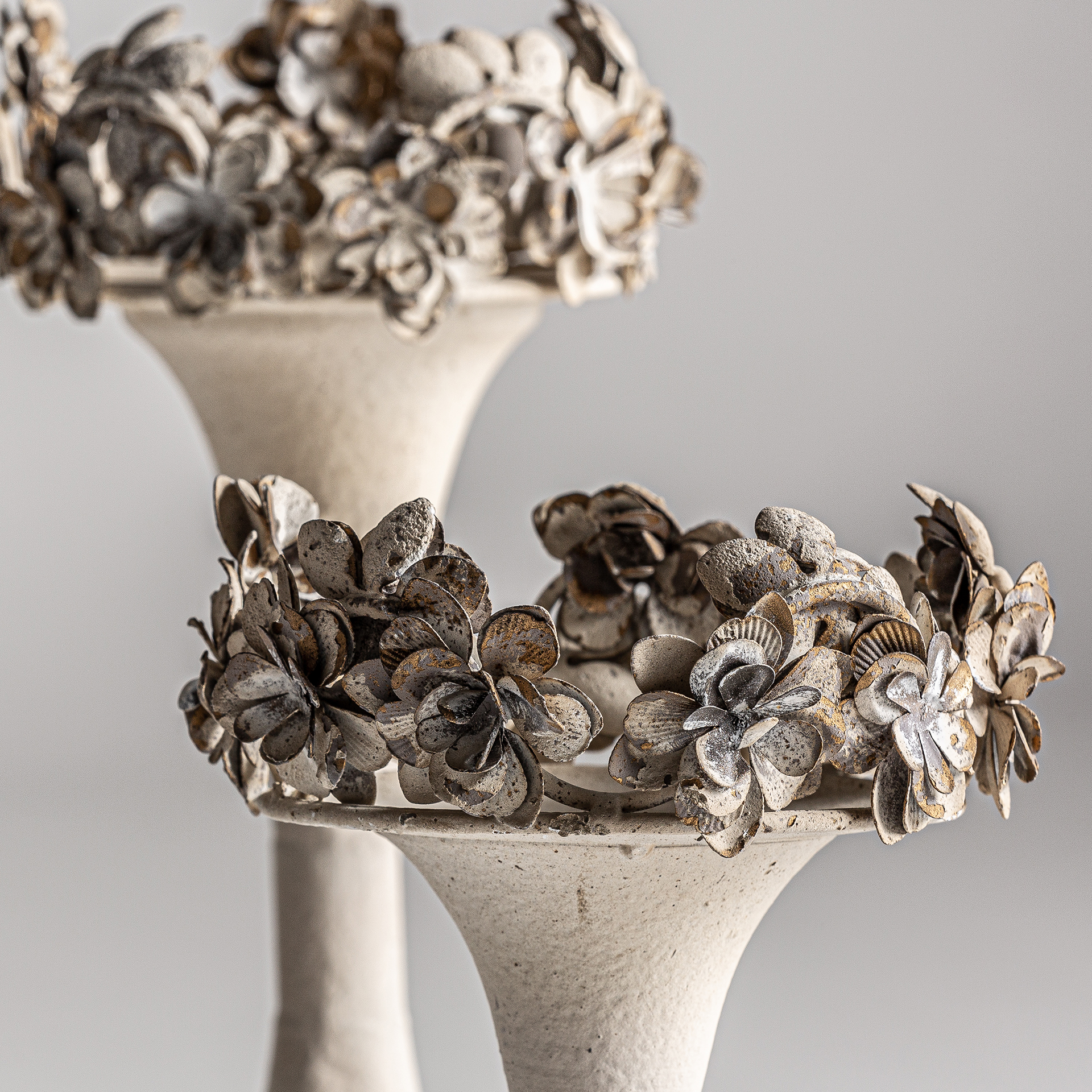 Portavela j/2, en color blanco roto envejecido, de estilo provenzal. Fabricado en hierro.