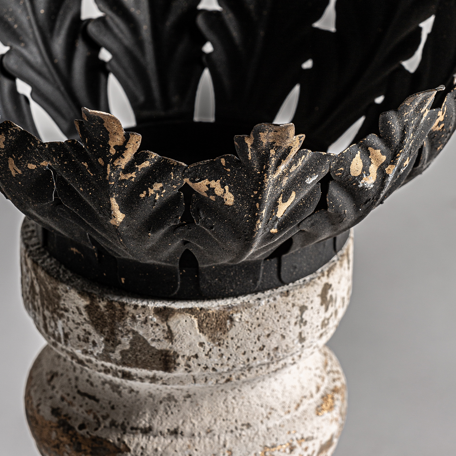 Portavela massa, en color negro/blanco/oro envejecido, de estilo provenzal. Fabricado en hierro, combinado con madera de abeto.