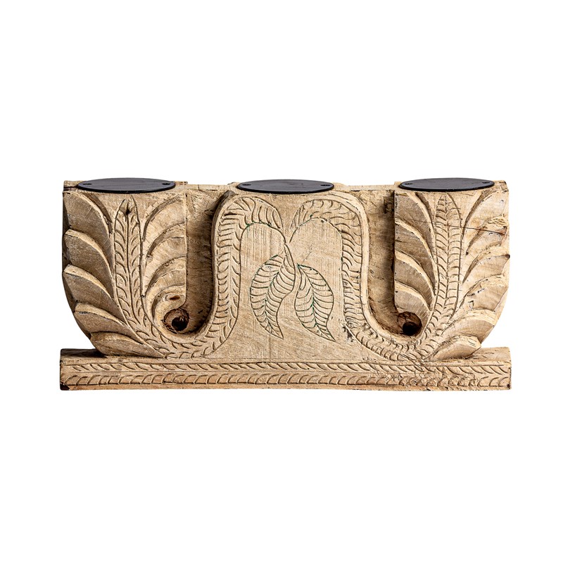 Portavela surt argeen, en color marrón envejecido, de estilo étnico. Fabricado en madera de teka, combinado con hierro.