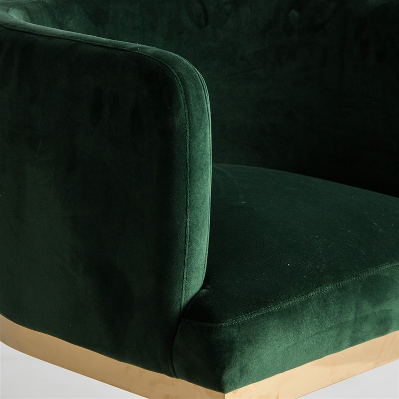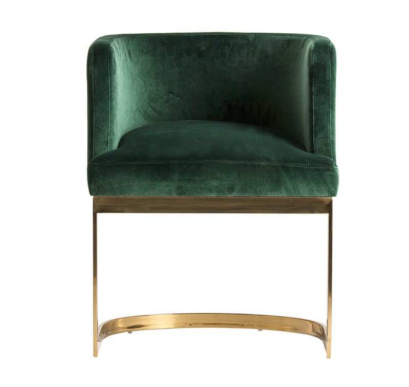 Silla betliar, de estilo contemporáneo. Fabricado en terciopelo, en color verde, combinado con madera dm y acero. Relleno: espuma.