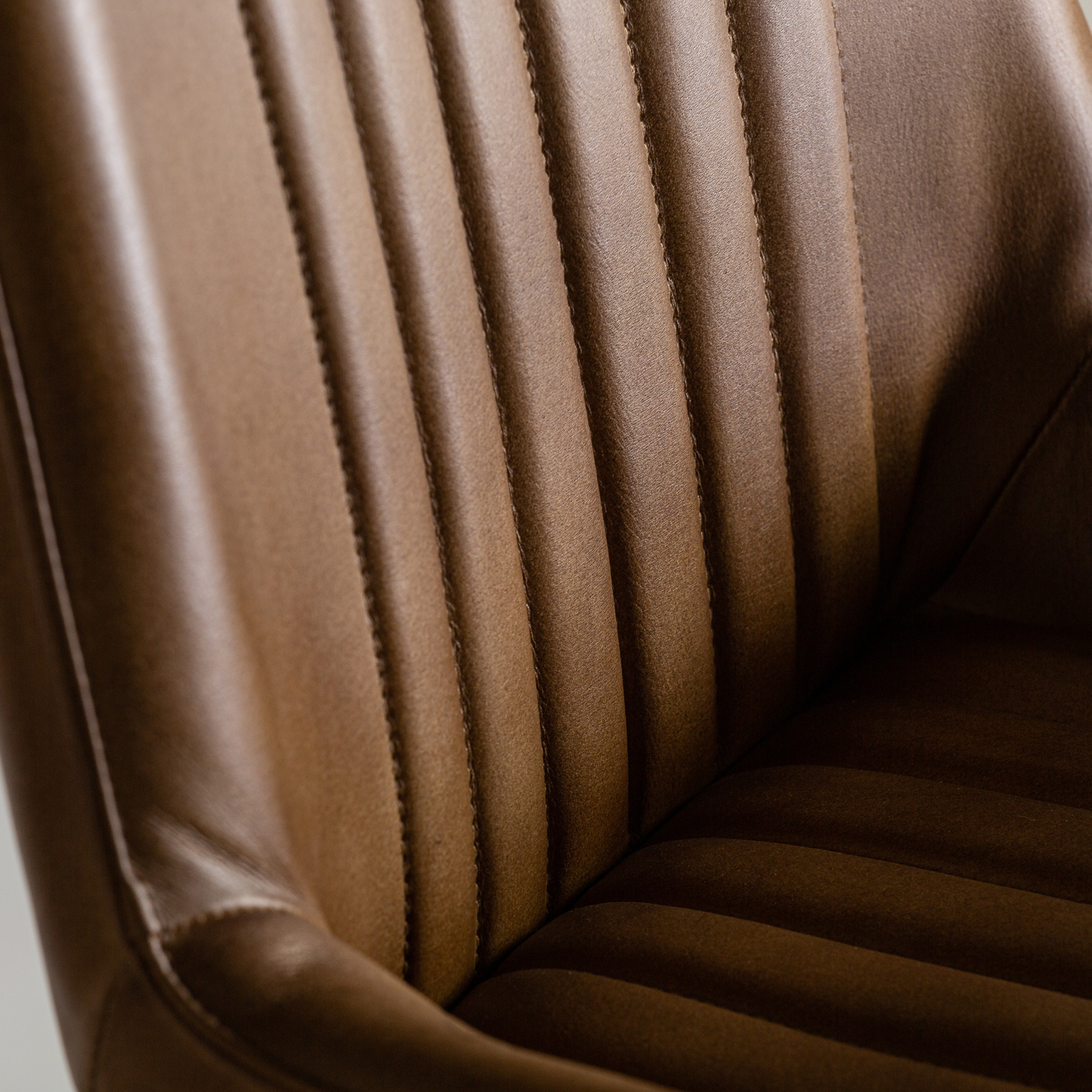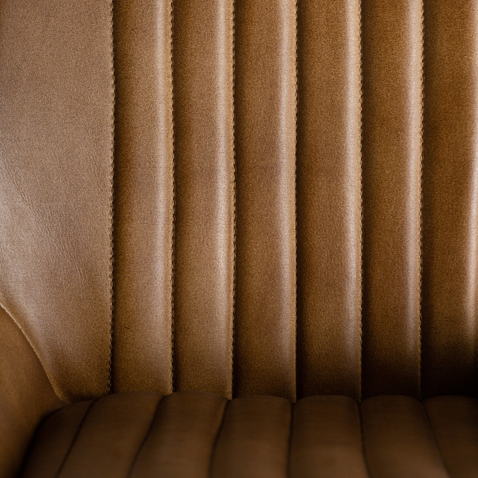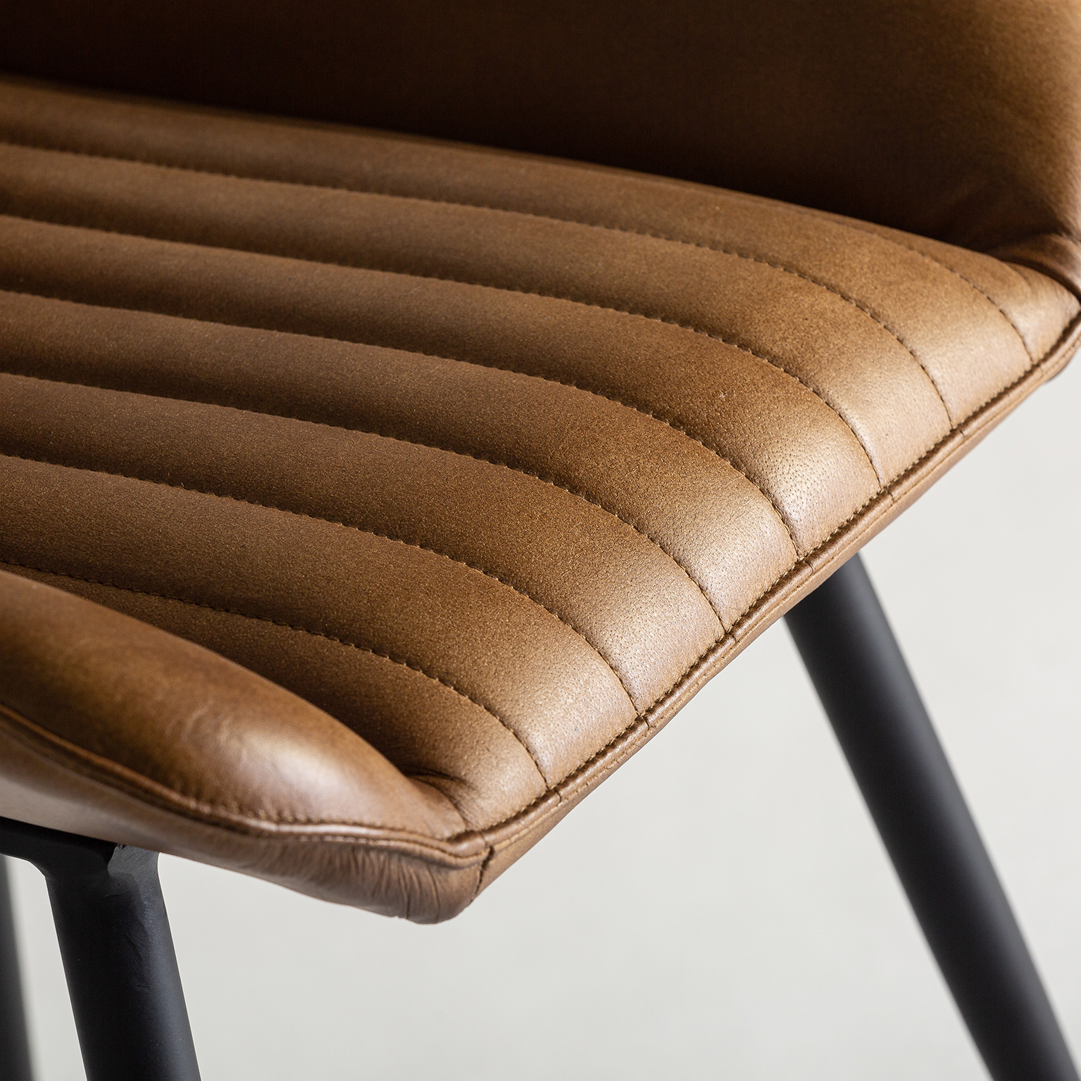 Silla morton, en color camel, de estilo vintage. Fabricado en cuero, combinado con hierro y espuma. Producto desmontable.