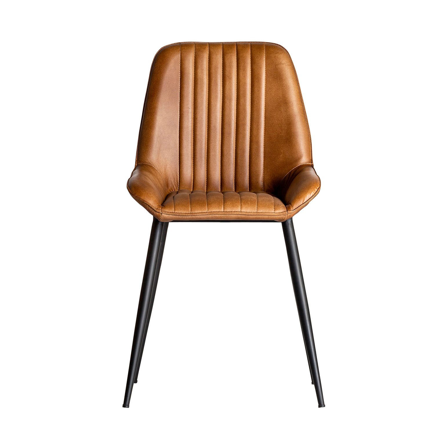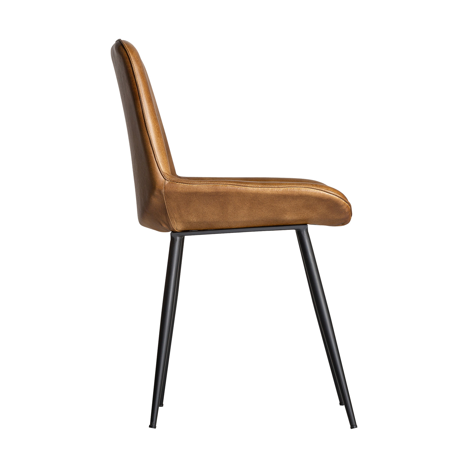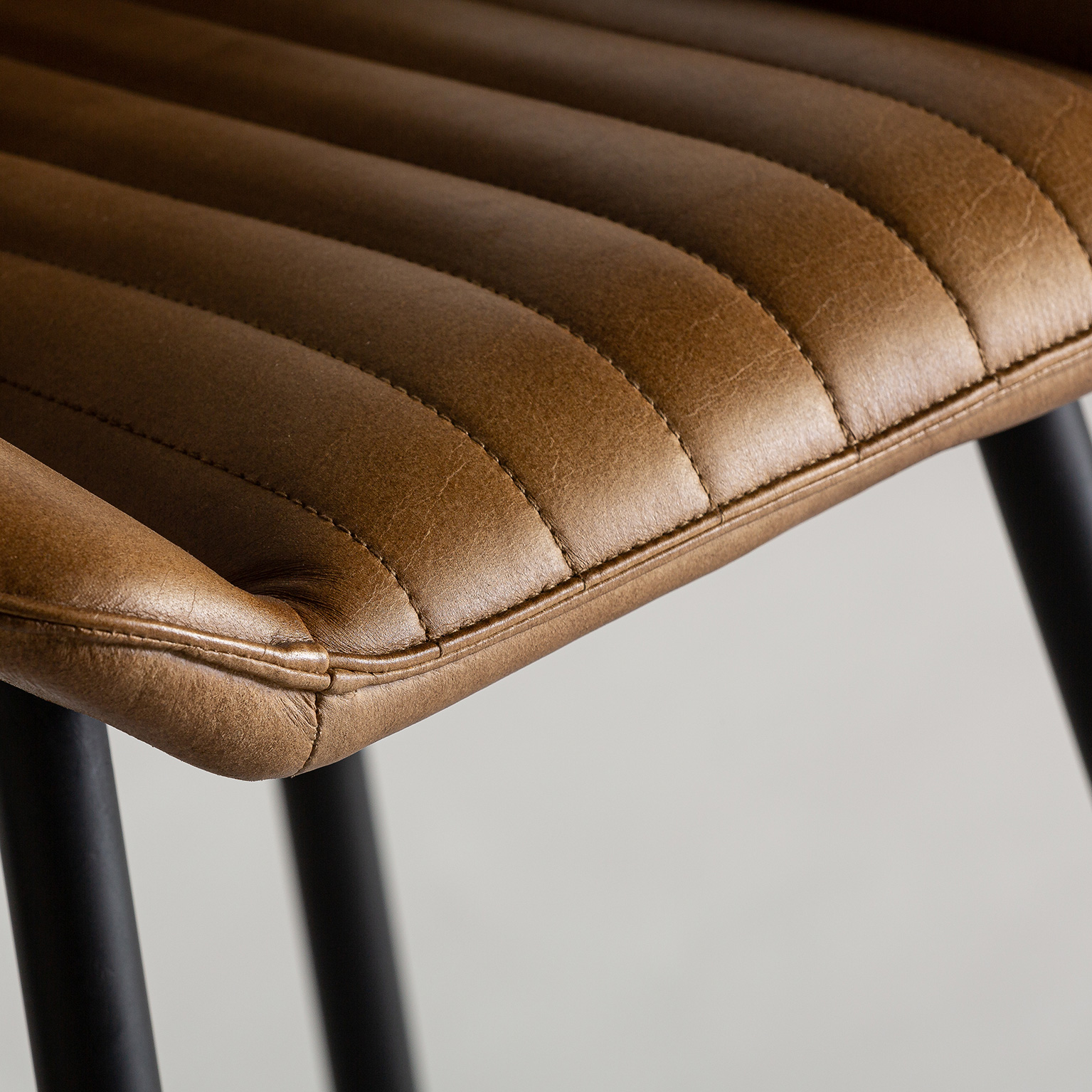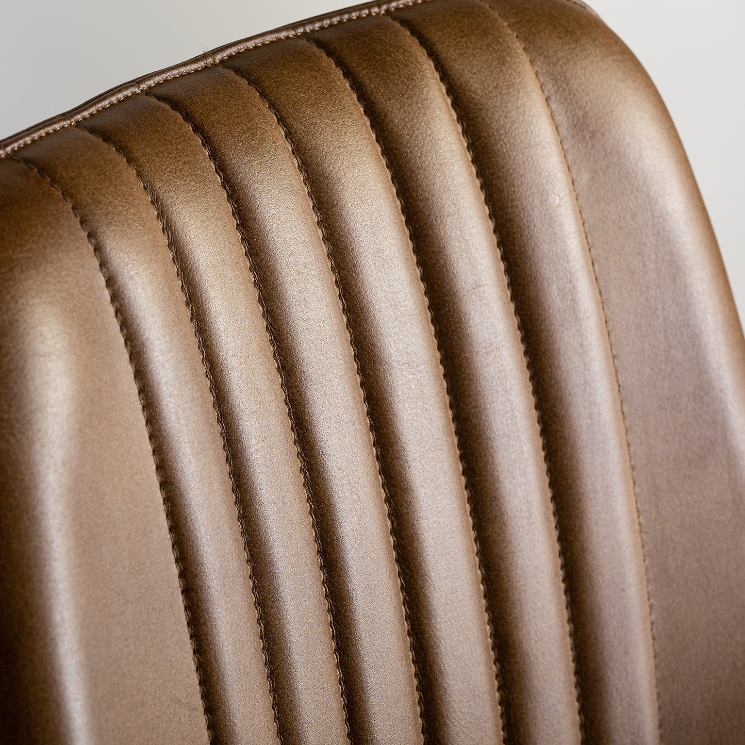 Silla morton, en color camel, de estilo vintage. Fabricado en cuero, combinado con hierro y espuma. Producto desmontable.