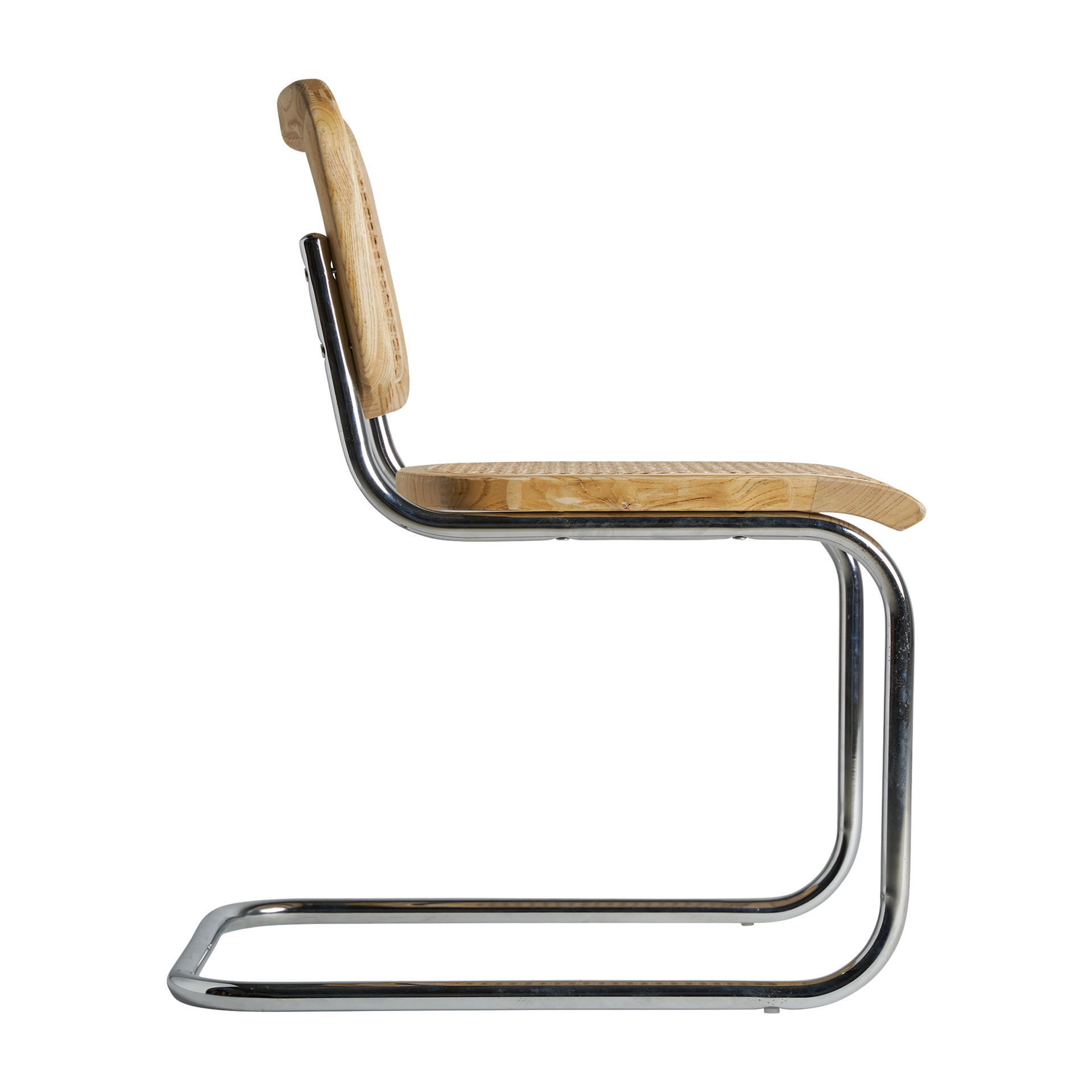 Silla sins, en color marrón, de estilo contemporáneo. Fabricado en madera de olmo, combinado con ratán y acero. Producto desmontable.