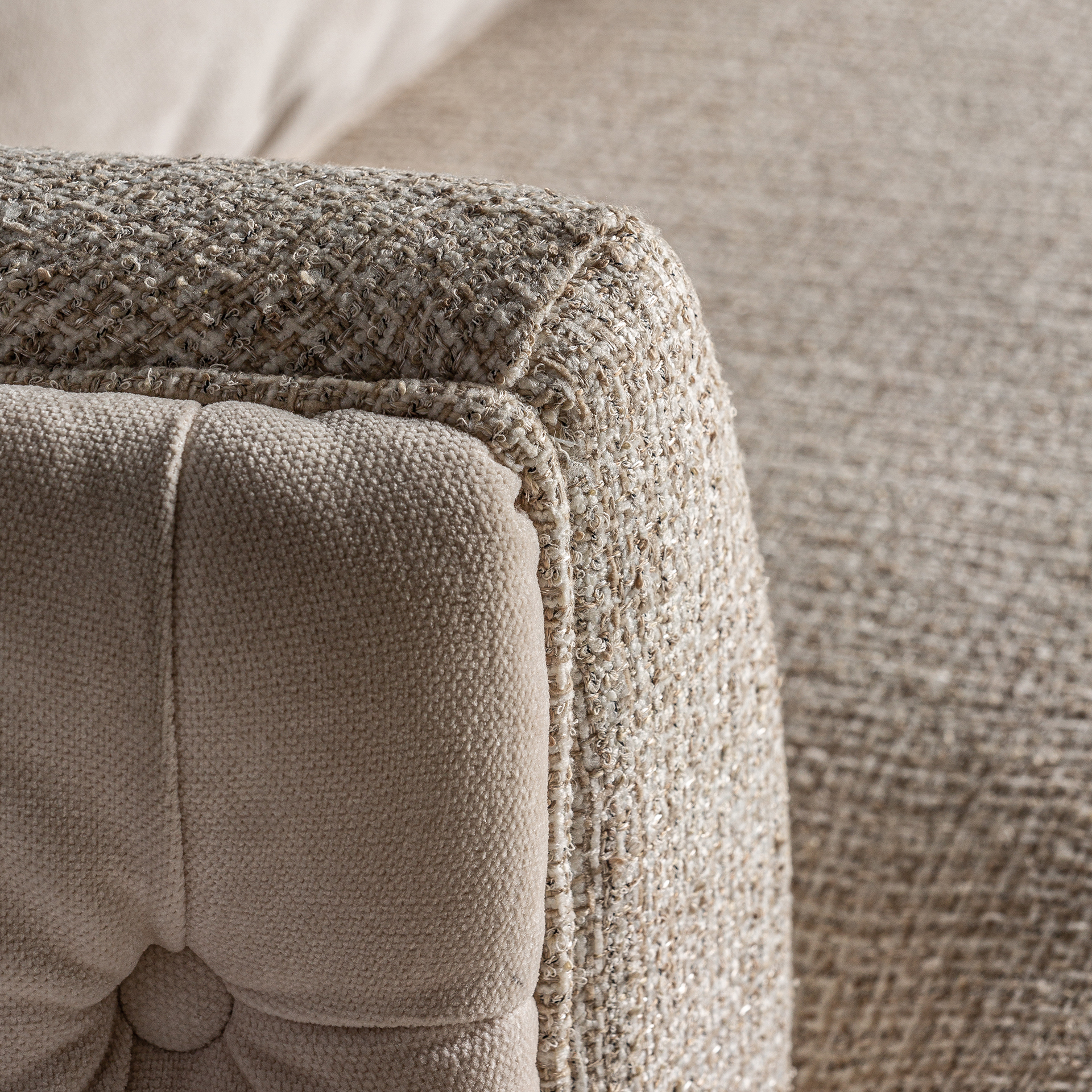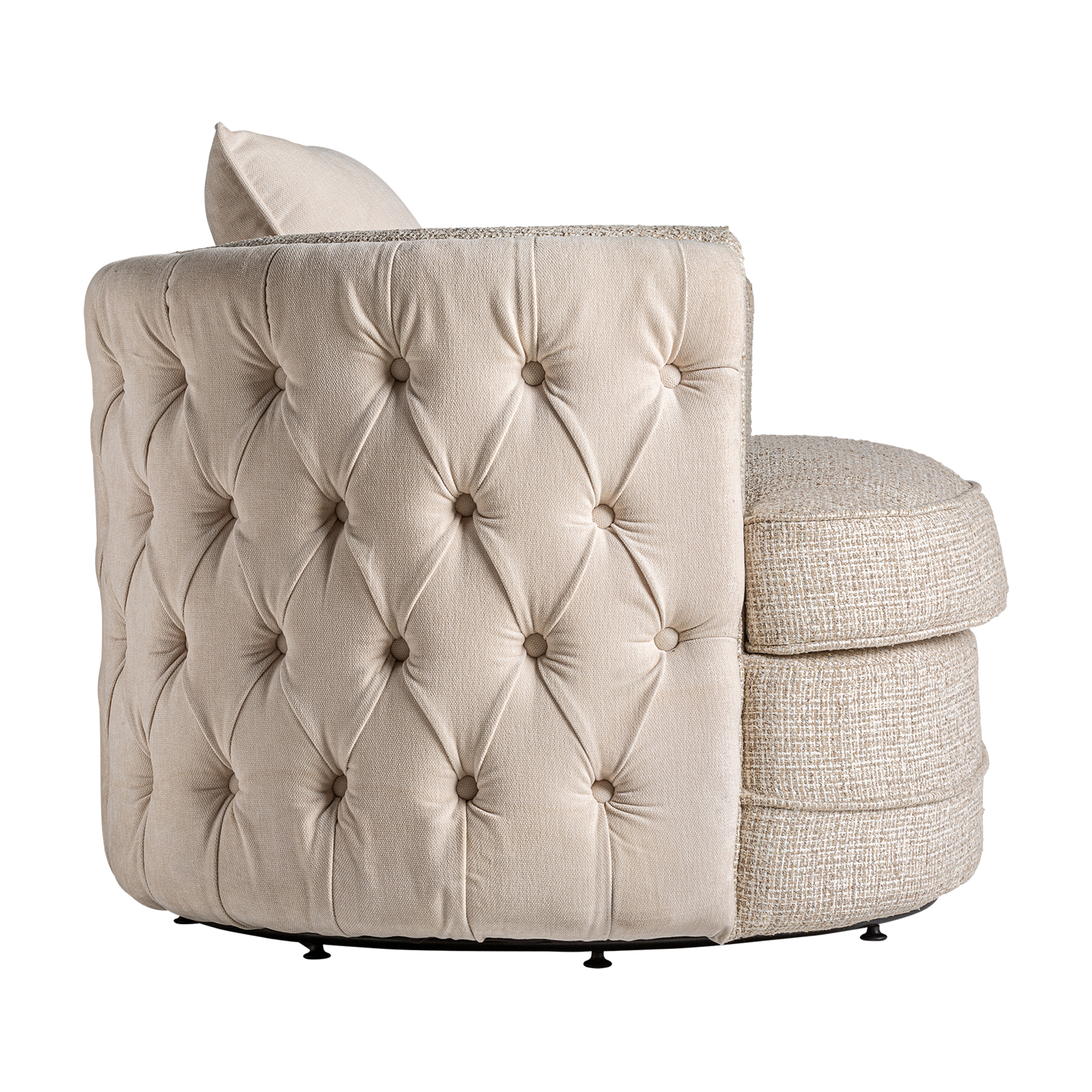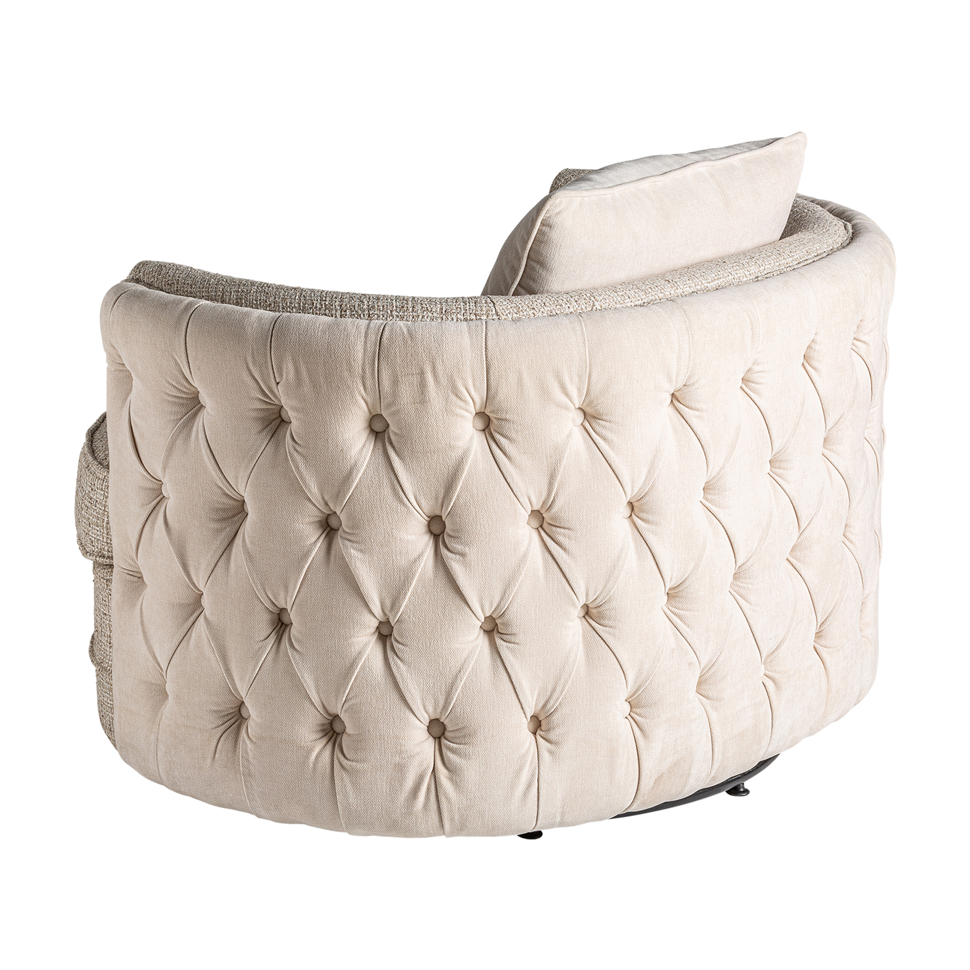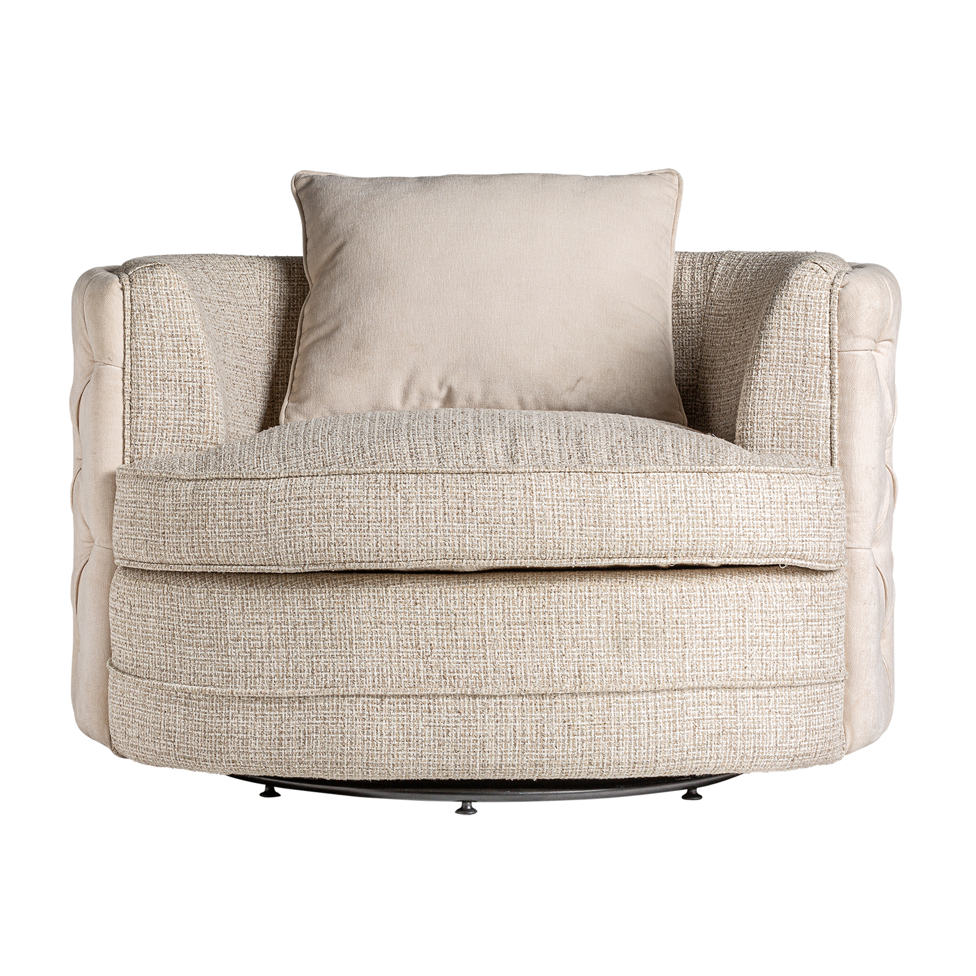 Sillón giratorio galtur, en color blanco, de estilo art deco. Fabricado en madera de pino, combinado con lino y hierro. Producto desenfundable.