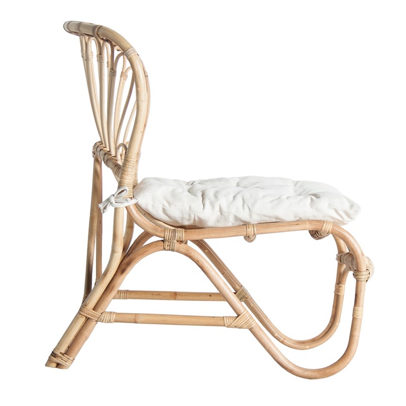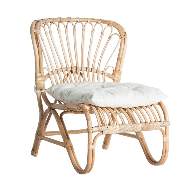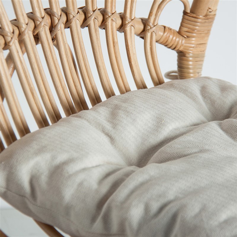 Sillón lipsko, en color marrón, de estilo contemporáneo. Fabricado en ratán, combinado con algodón.