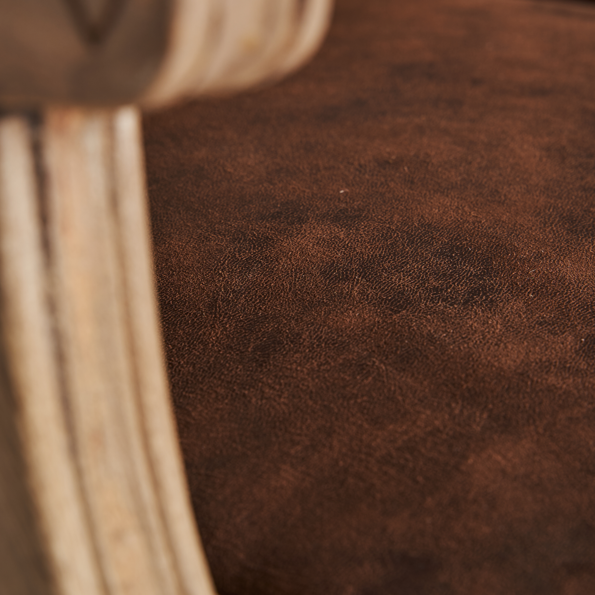 Sillón sampzon de estilo colonial, fabricado en madera de mango en color marrón, combinado con poliéster.