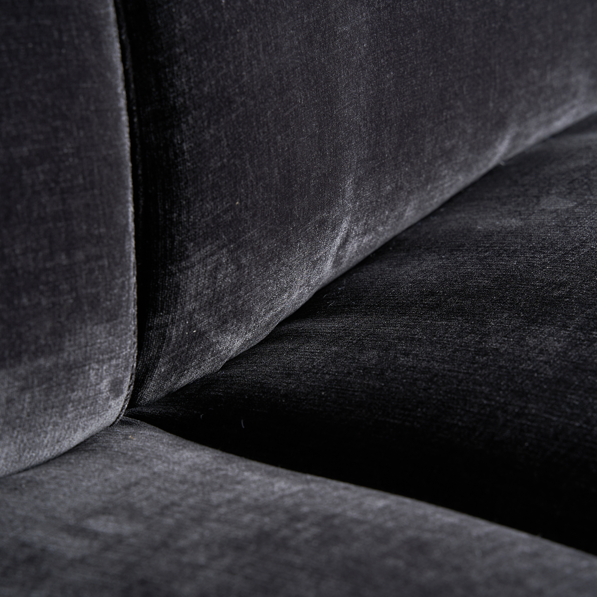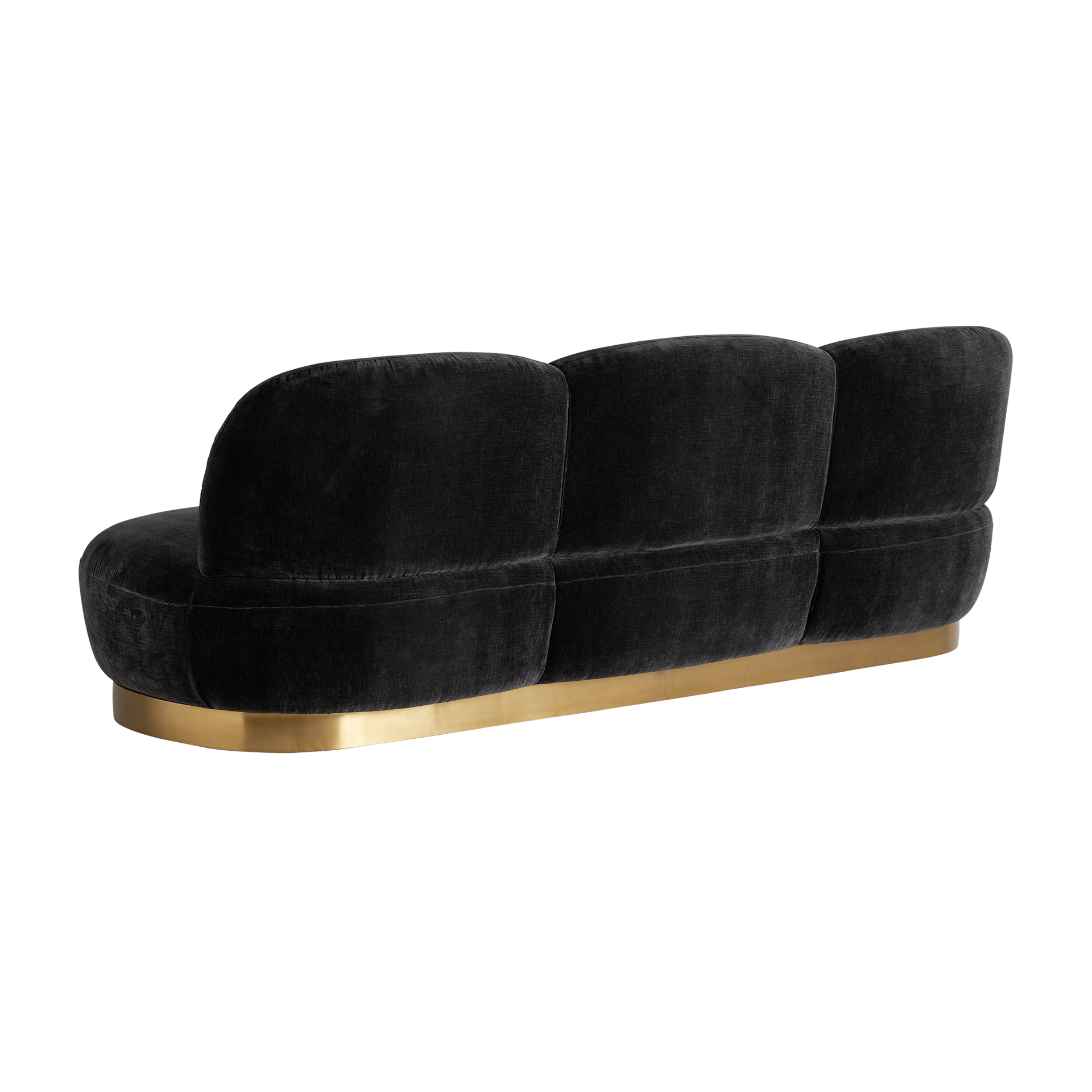 Sofá balsot en color negro oro de estilo art deco. Fabricado en madera de pino combinado con terciopelo y acero.