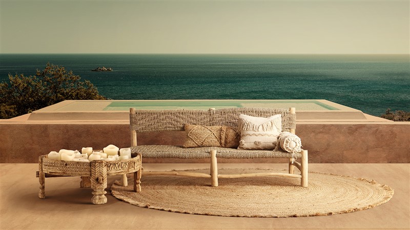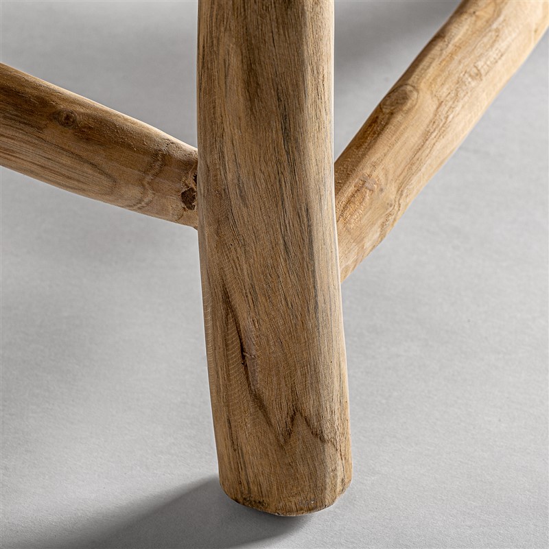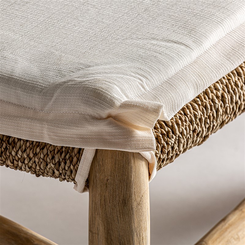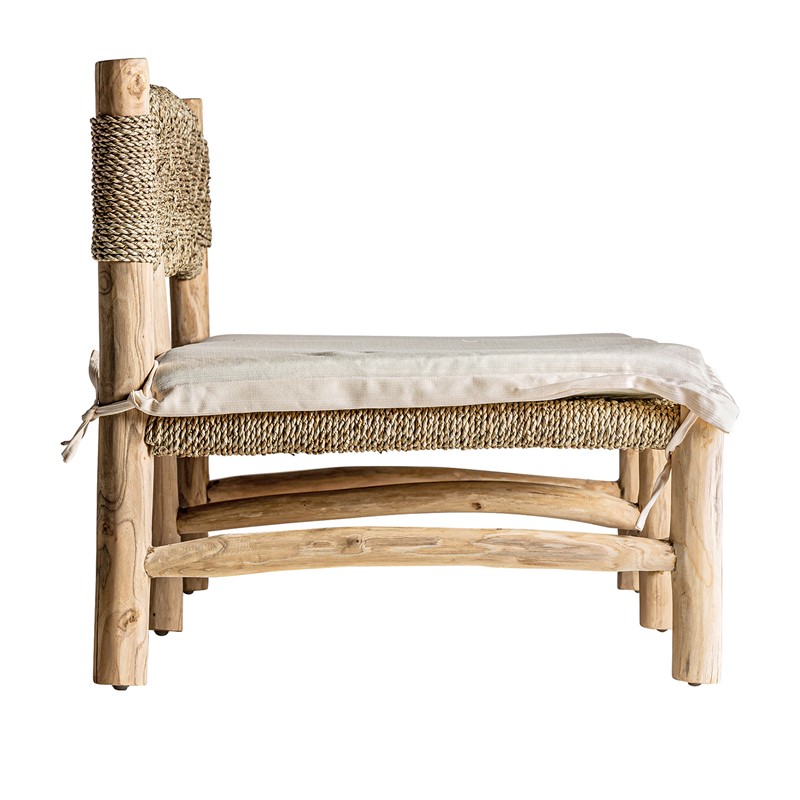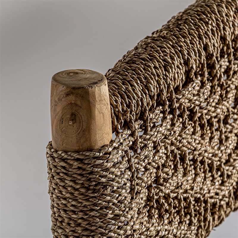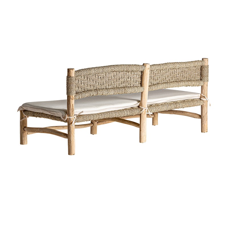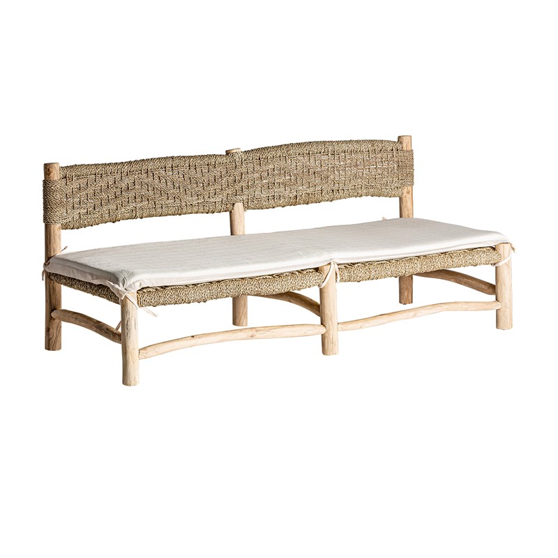 Sofá manhula, en color marrón, de estilo colonial. Fabricado en madera de teka, combinado con fibra natural y poliéster.