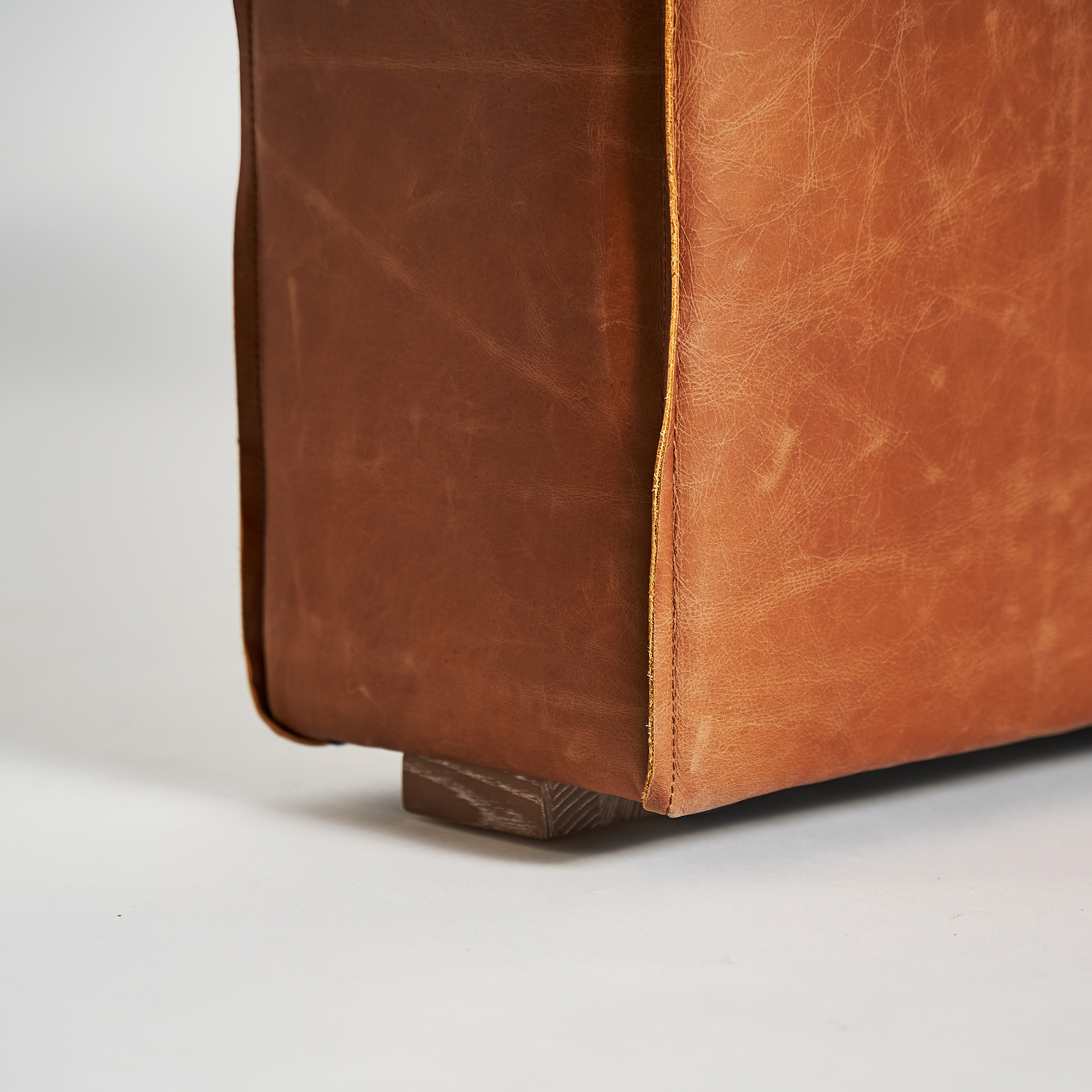 Sofá modular apoyabrazos auburn, de estilo vintage. Fabricado en madera abedul, en color marrón, combinado con piel, en color marrón y espuma. Compatible con: 31305,31306.
