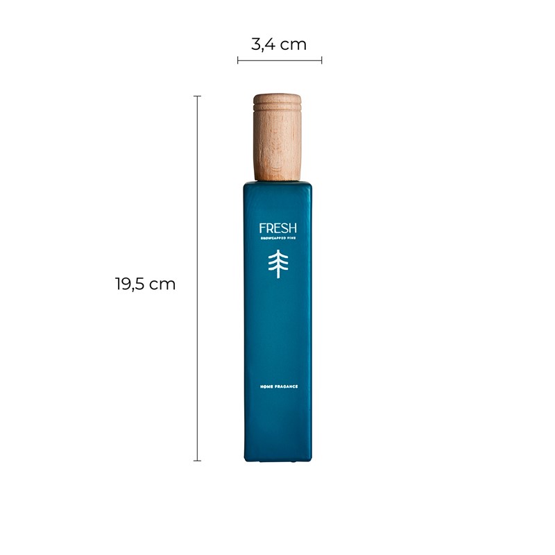Spray Fresh de estilo shabby chic, fabricado en vidrio en color azul, combinado con madera de haya. 85% de alcohol, 15% de fresco de pino nevado.