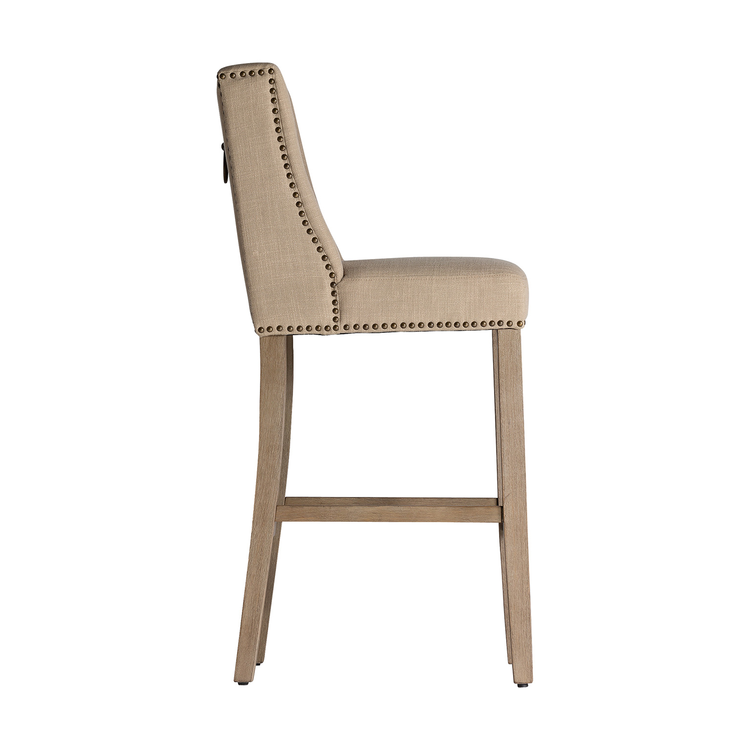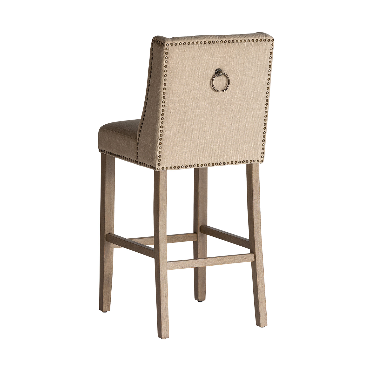 Taburete erfurt, en color crema, de estilo colonial. Fabricado en madera de pino, combinado con loneta. Producto desmontable.