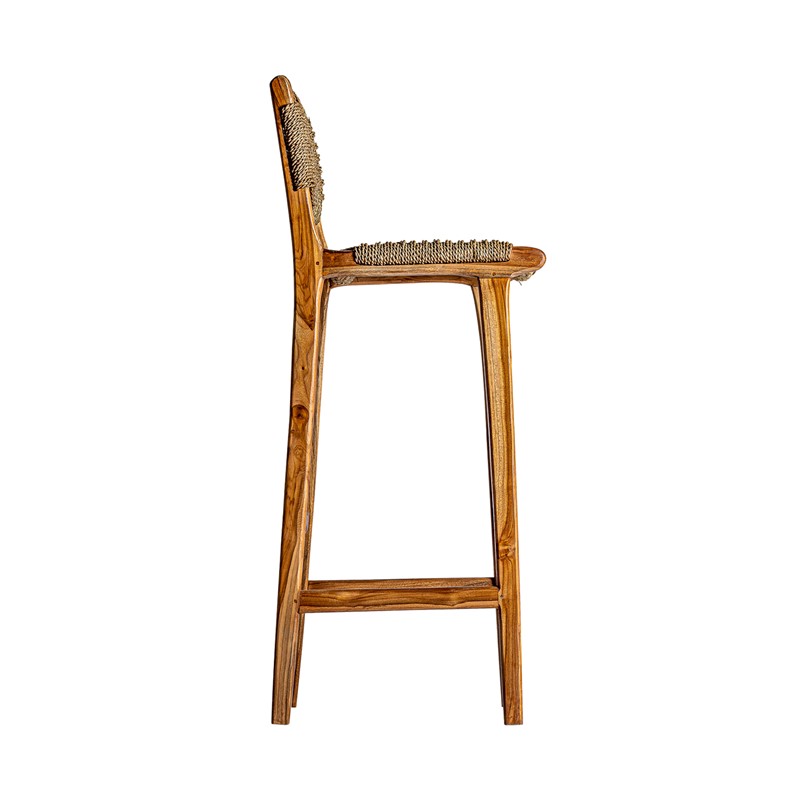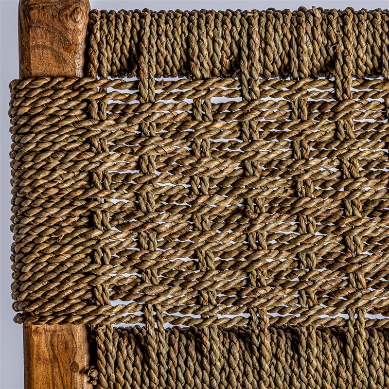 Taburete kavala, en color natural, de estilo vintage. Fabricado en madera de teka, combinado con cuerda.