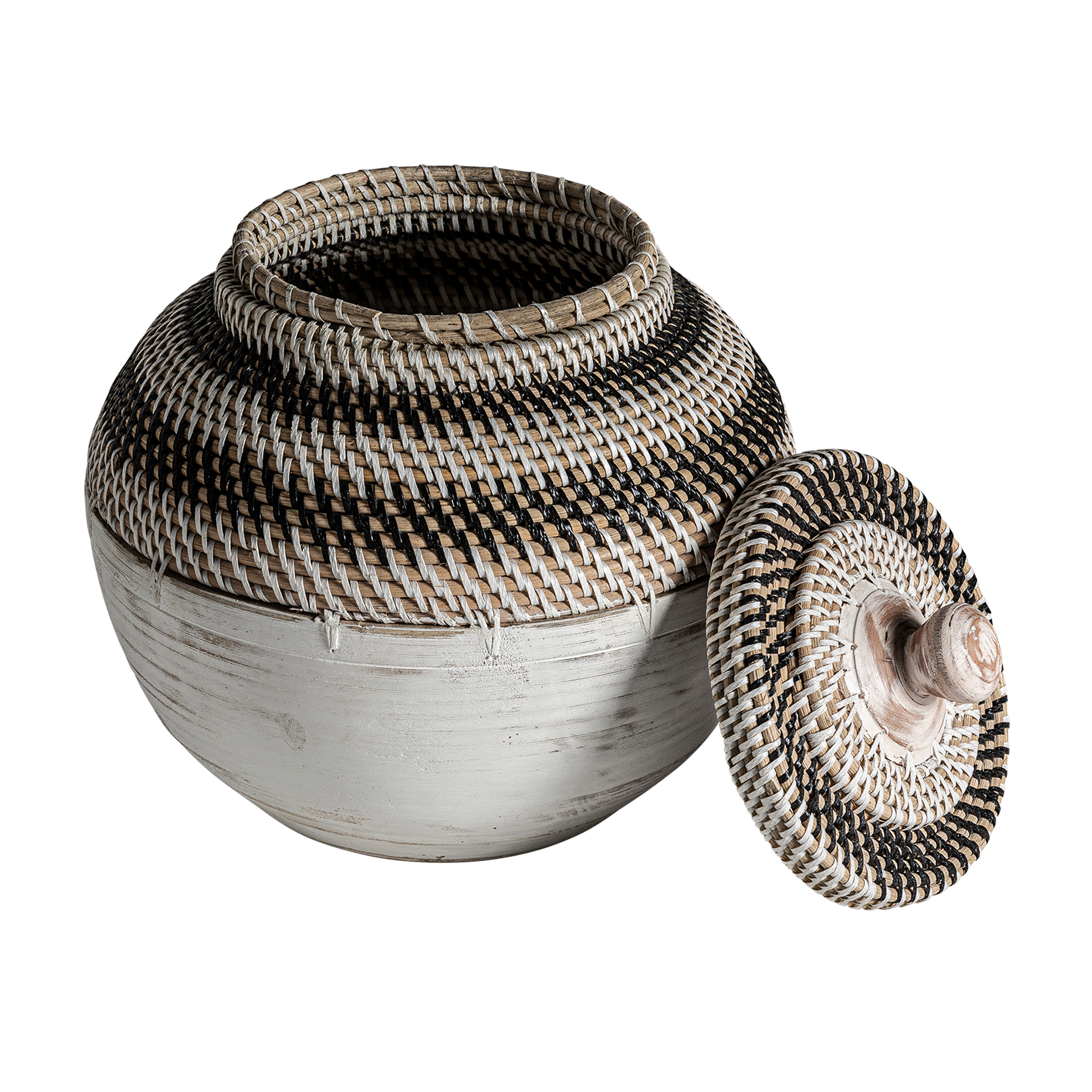 Tibor zirba, en color marrón/beige, de estilo étnico. Fabricado en ratán.