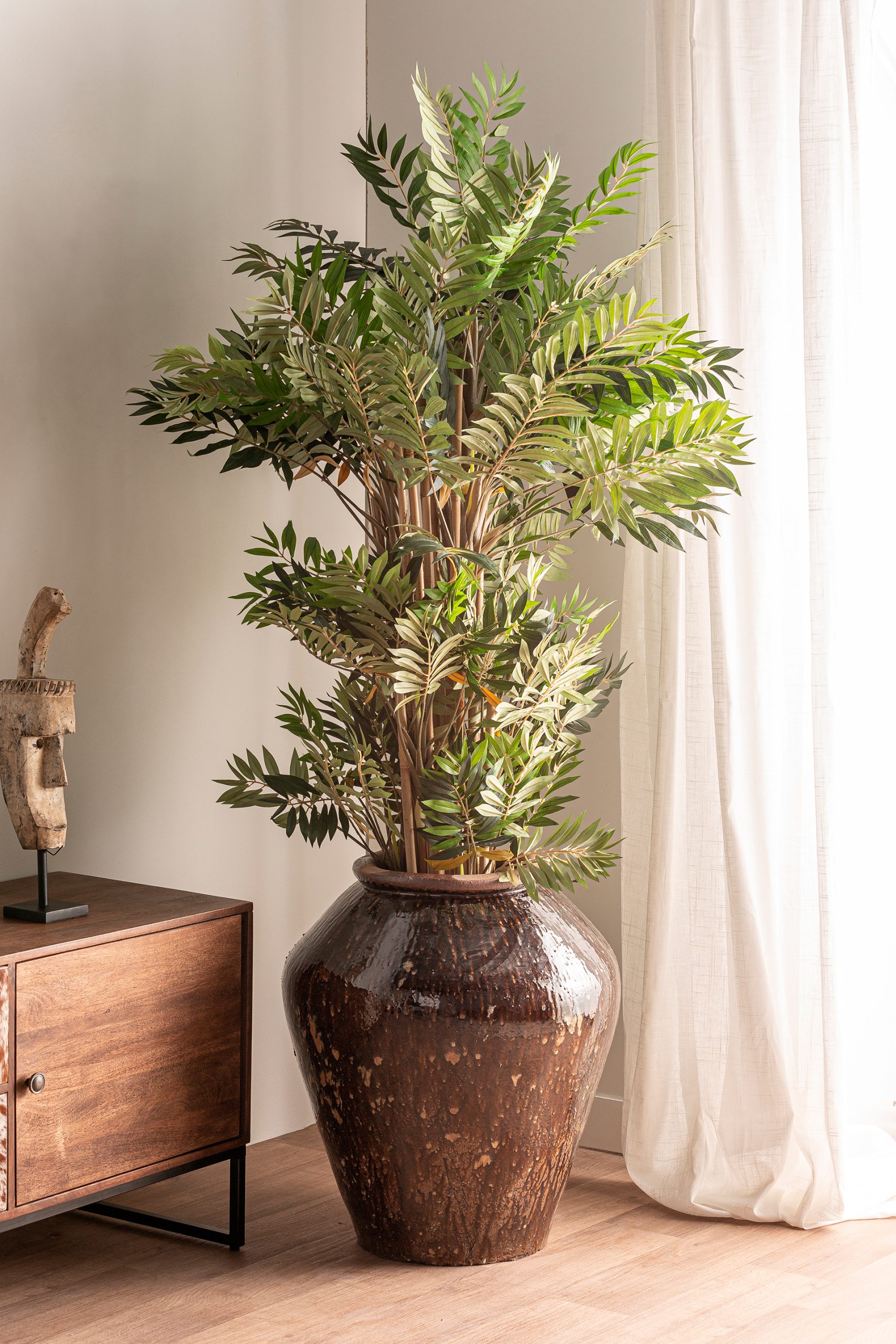 Tinaja Lappe de estilo colonial fabricado en cerámica en color chocolate con acabado envejecido.
