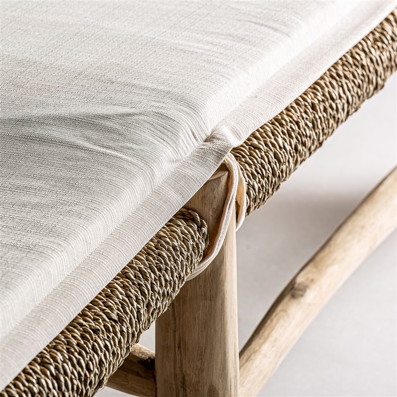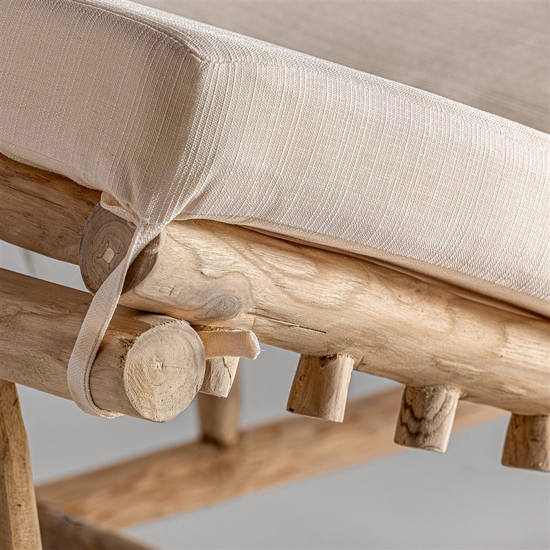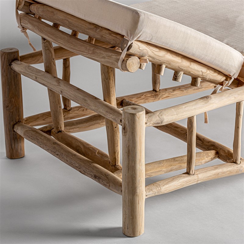 Tumbona atibo, en color marrón, de estilo étnico. Fabricado en madera de teka. Producto plegable.