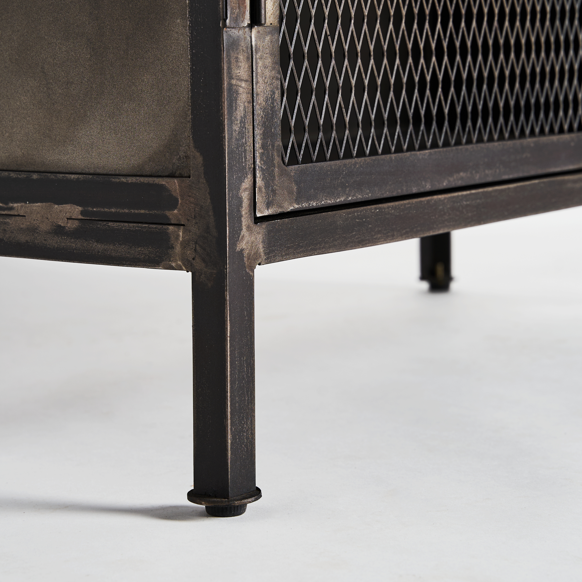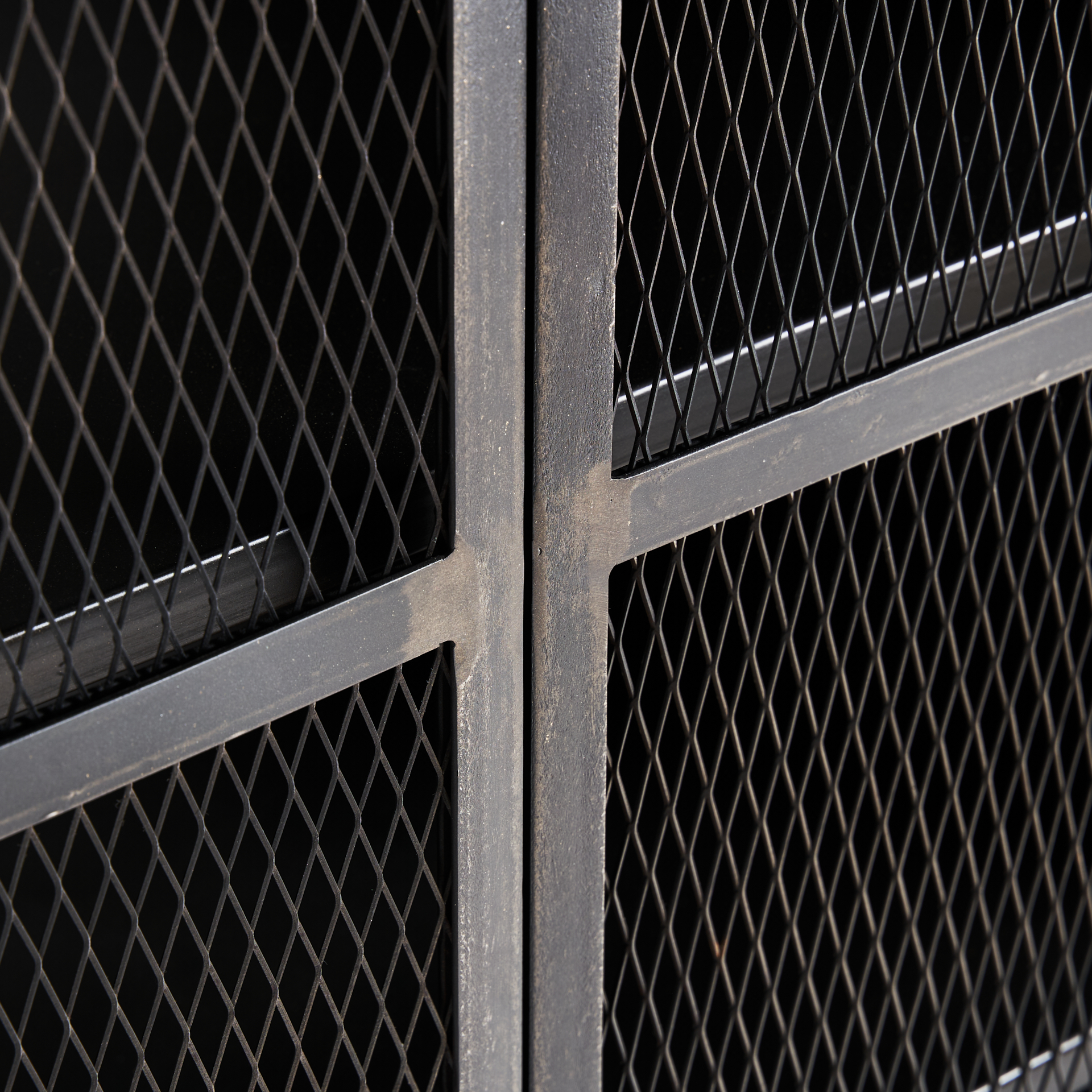 Vitrina vyhne, en color negra, de estilo industrial. Fabricado en madera de mango, combinado con hierro.